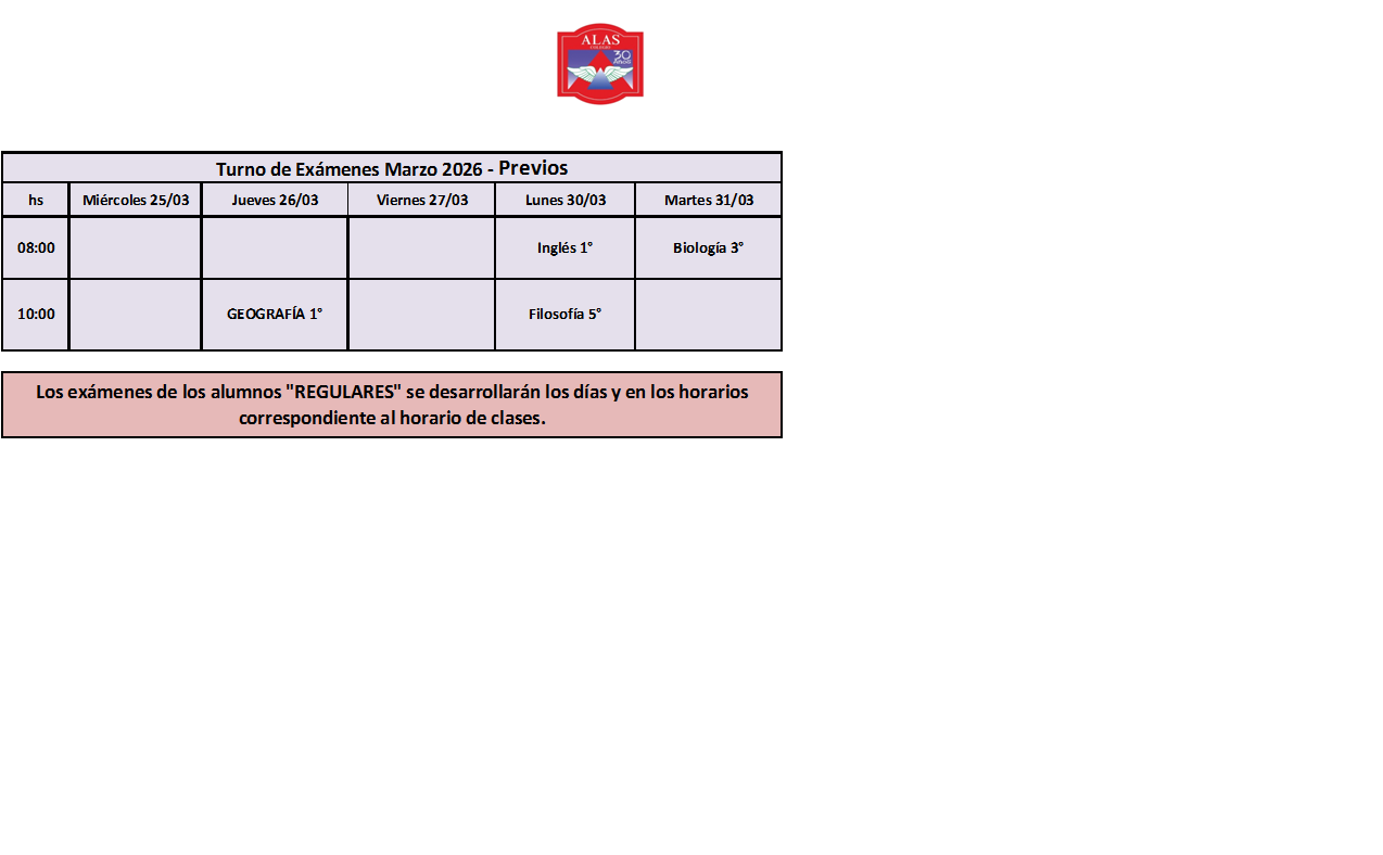 Cronograma de exámenes Turno Marzo 2026