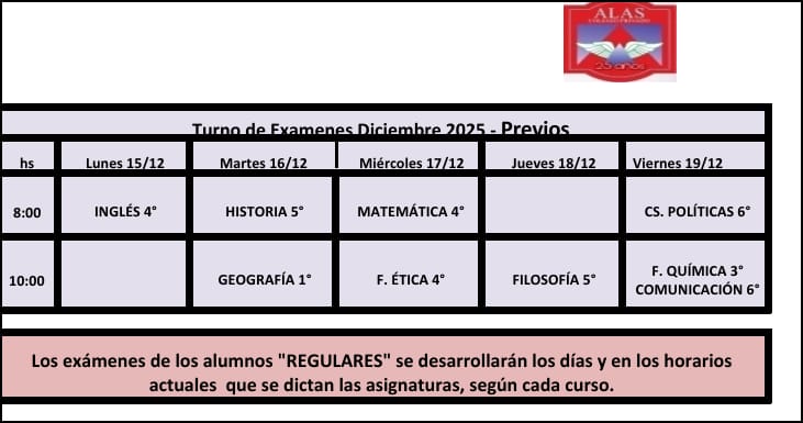 Estimada familia de acuerdo a los resultados obtenidos por su hijo/a durante el segundo trimestre de la desaprobación de las asignaturas y con el fin de acompañar y fortalecer el proceso de aprendizaje se ofrece la posibilidad de que los/as estudiantes puedan recuperar mediante la realización de un "Trabajo Práctico Autónomo" por cada asignatura, que lo completarán y harán entrega en formato papel al profesor/a hasta el 15 de octubre y la defensa oral o escrita de acuerdo al criterio de cada profesor será del 20 al 24 de octubre. Continúa abierta también, la posibilidad de recuperar el PRIMER TRIMESTRE.